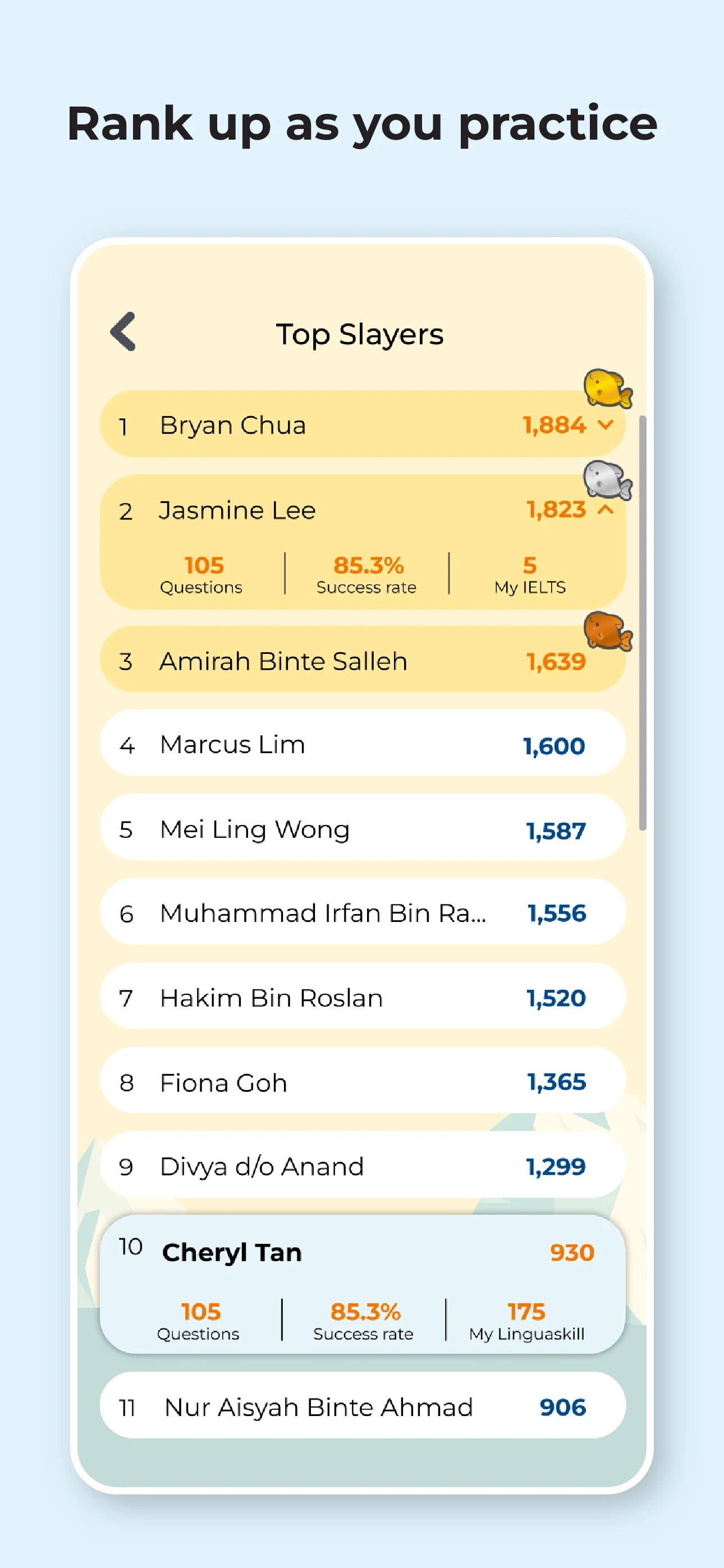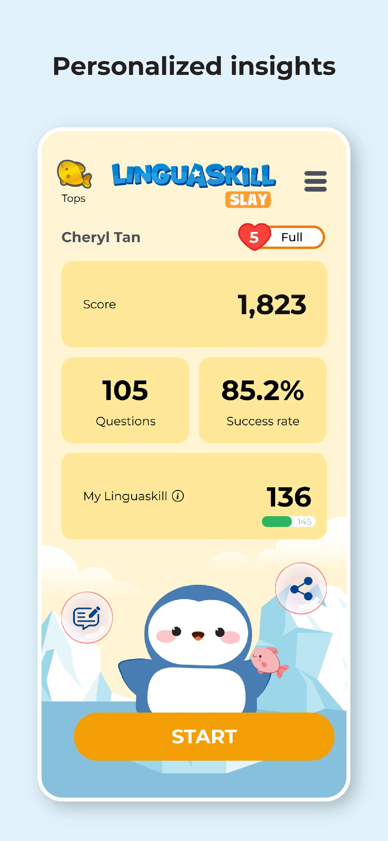 Linguaskill® Slay is an adaptive Linguaskill vocabulary and grammar practice of the English language for children 6 and above. It is an adaptive app that delivers quiz questions according to the student’s ability using the highly effective Rasch algorithm. Using it regularly improves the student's Linguaskill level in very short time.