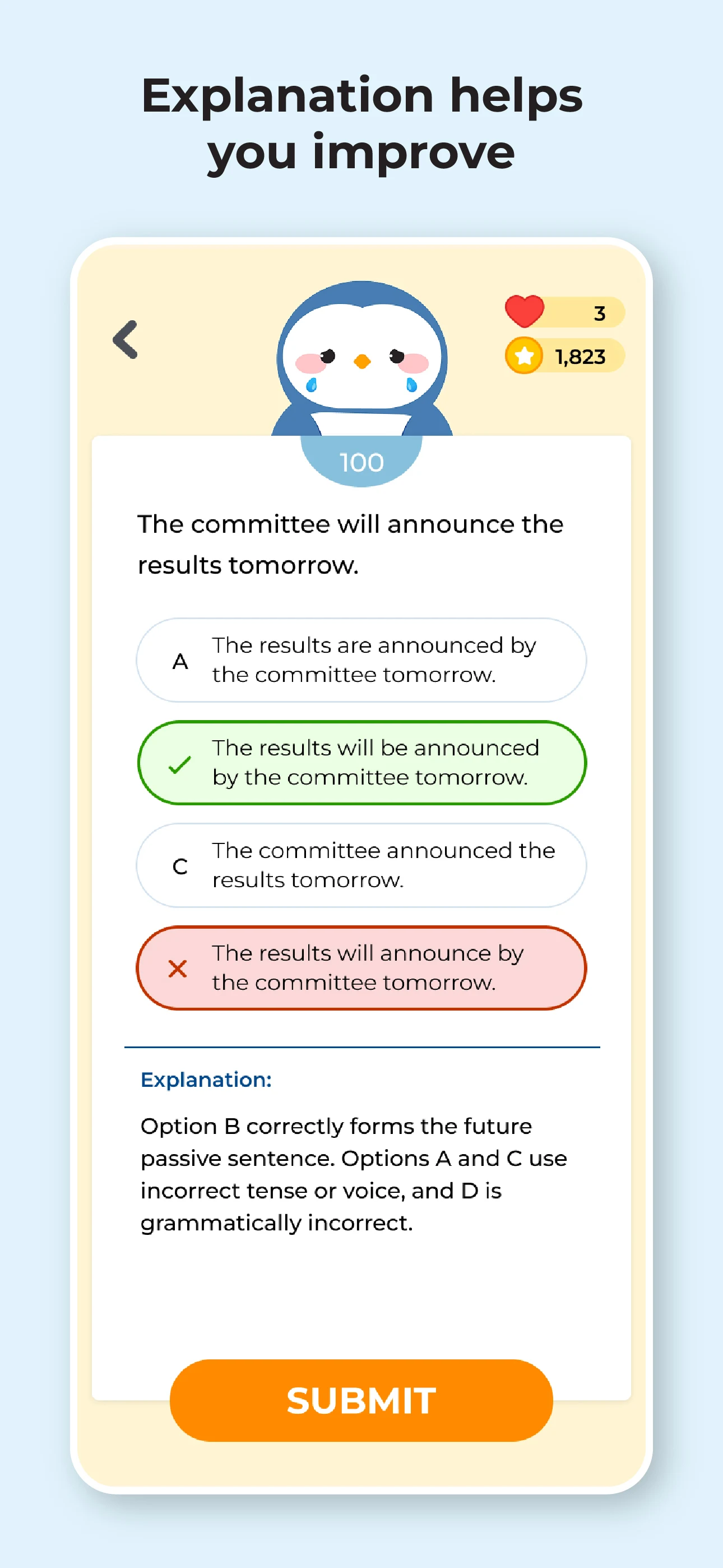 Using this app consistently over a period of time will help improve your score up to CEFR C2 / 210 / IELTS 9.0.